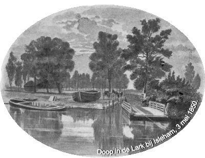 Eerst werden twee vrouwen gedoopt – Diana Wilkinson en Eunice Fuller – en men vroeg mij hen door het water naar de leraar te begeleiden; maar daarvoor was ik te verlegen. Ik had het dopen nooit tevoren gezien, alles was nieuw voor mij, en ik was bang een vergissing te maken. De wind was scherp en koud toen het mijn beurt was de rivier in te gaan; maar toen ik enige stappen gedaan had en de mensen in de veerboot zag, en in de boten aan beide oevers was het alsof de hemel en de aarde en de hel mij konden aankijken, want ik schaamde mij niet mij op die tijd en op die plaats als een volgeling van het Lam bekend te maken. Mijn verlegenheid was verdwenen, zij ging met het water van de rivier maar de zee, en het is zeker door de vissen verslonden, want ik heb er nooit meer last van gehad. De doop heeft ook mijn tong losgemaakt, want van die dag af was zij altijd in beweging. In deze rivier de Lark heb ik duizenden angsten verloren en ervaren dat in het houden van de geboden van de Heere een rijke beloning ligt (Psalm 19:12). Het was voor mij een zeer gelukkige dag. God zij geloofd voor zijn bewarende goedheid, die mij in staat stelt zo’n tijd later er nog met innig genoegen over te schrijven!
